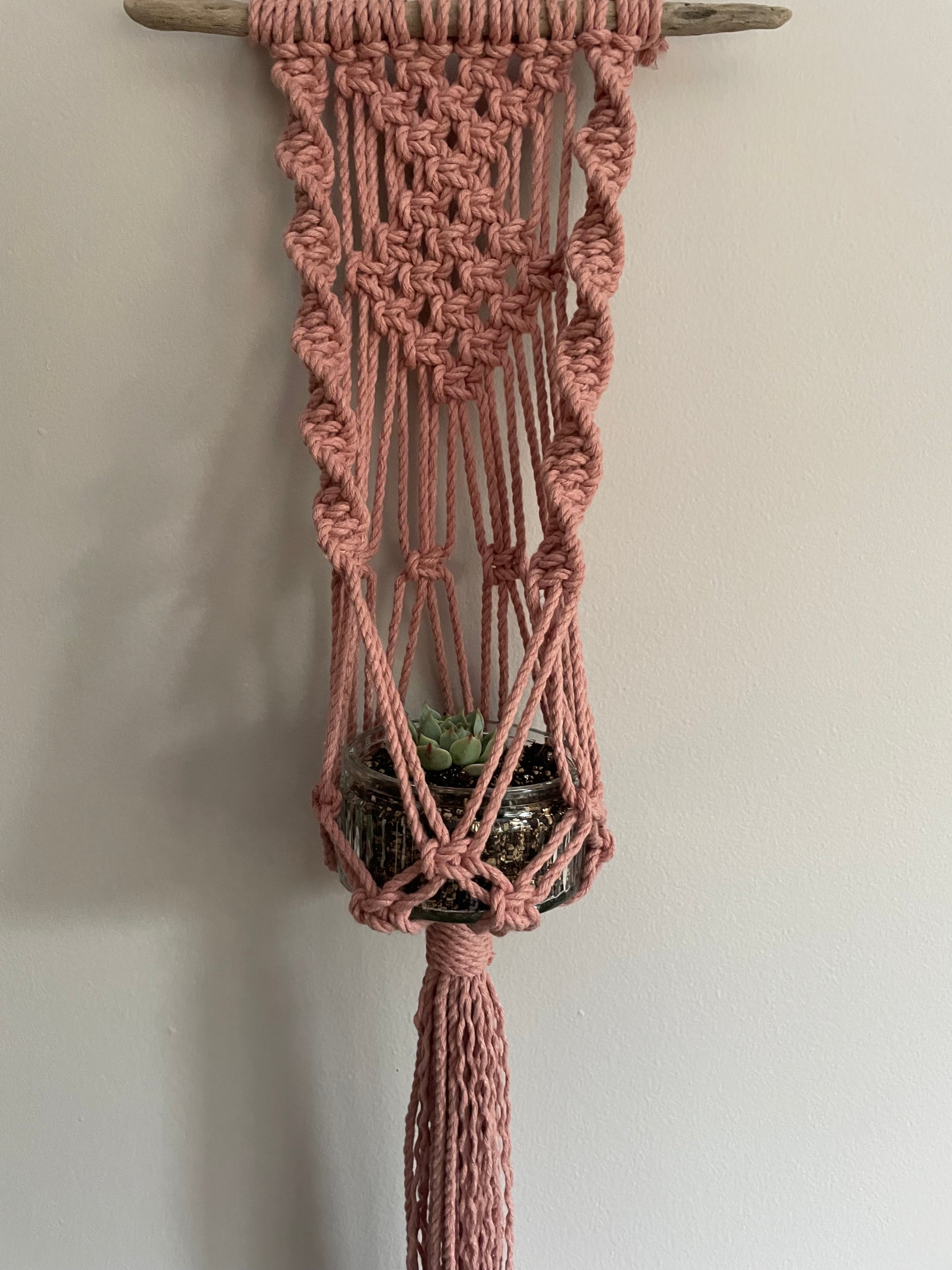 The Thistle is a wall mount hanger. Perfect for locations with limited ceiling height or where wall display is more convenient. This hanger is made from recycled cotton cord and locally (Cornish) beach combed driftwood. This is the little sister of the Sweetpea